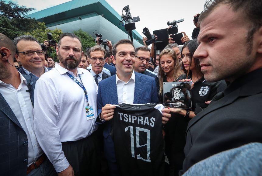 Η πρωινή επίσκεψη του πρωθυπουργού Αλέξη Τσίπρα στην 83η Διεθνή Έκθεση Θεσσαλονίκης δεν θα μπορούσε να μην συμπεριλαμβάνει και μια βόλτα από το περίπτερο του ΠΑΟΚ.