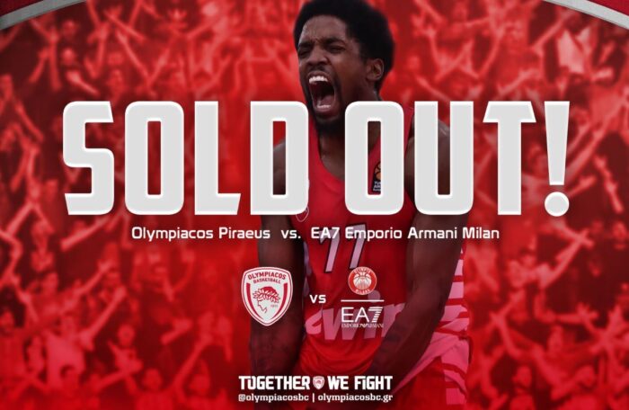Το sold out ανακοινώθηκε από την ΚΑΕ Ολυμπιακός πριν το πρώτο τζάμπολ και συνοδεύτηκε από ένα μεγάλο ευχαριστώ στον κόσμο!
