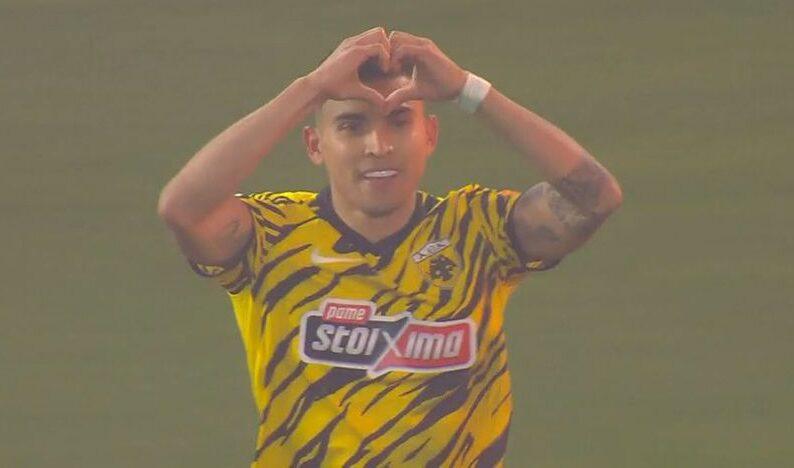 Η ΑΕΚ προηγήθηκε στο 68ο λεπτό του αγώνα απέναντι στον Παναθηναϊκό αμέσως μετά τη διακοπή που προκλήθηκε λόγω μιας κροτίδας που έπεσε πίσω από το τέρμα του Αλμπέρτο Μπρινιόλι.