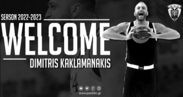 «Η ΚΑΕ ΠΑΟΚ mateco ανακοινώνει τη συμφωνία με τον διεθνή καλαθοσφαιριστή Δημήτρη Κακλαμανάκη ως το τέλος της αγωνιστικής περιόδου 2022-23. Ο Δημήτρης Κακλαμανάκης επιστρέφει μετά από ενάμισι χρόνο στην ομάδα μας και θα άμεσα στη διάθεση του κόουτς Λυκογιάννη.