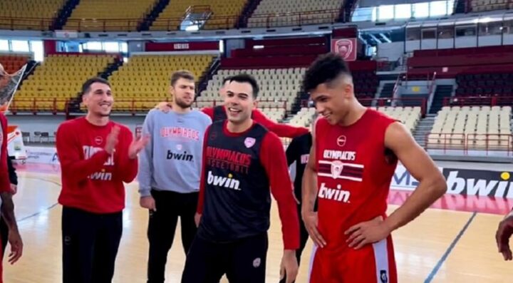 Φυσικά, η ΚΑΕ Ολυμπιακός προνόησε και τους ετοίμασε τούρτα-έκπληξη με όλους τους συμπαίκτες τους να μαζεύονται στο κέντρο του ΣΕΦ για να τους τραγουδήσουν «χρόνια πολλά».