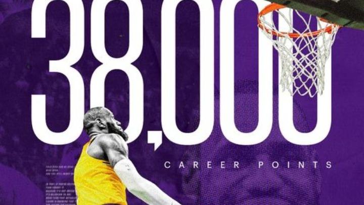 LeBron James is the second player in NBA history to score 38,000 career points.