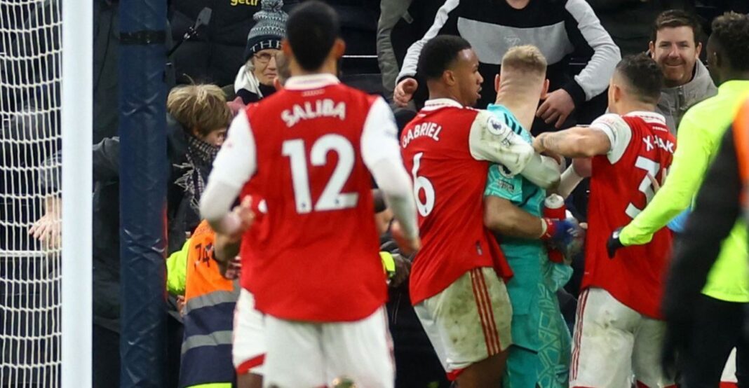 Επεισοδιακό ήταν το φινάλε στο χθεσινό ντέρμπι του Λονδίνου ανάμεσα σε Τότεναμ και Άρσεναλ. Ο διαιτητής είχε σφυρίξει μόλις τη λήξη του αγώνα και οι Κανονιέρηδες πανηγύριζαν μία ακόμη σπουδαία νίκη στον δρόμο προς τον τίτλο.