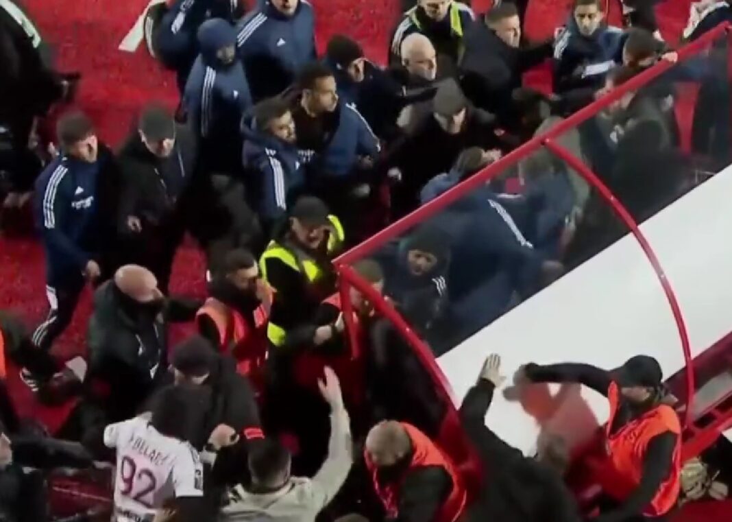 Μάλιστα, όπως διακρίνεται και σε βίντεο, οι οπαδοί των γηπεδούχων λίγο έλειψε να συμμετάσχουν και αυτή στην ένταση καθώς επιχειρούσαν από τις κερκίδες με κάθε τρόπο να επιτεθούν στους αντιπάλους.