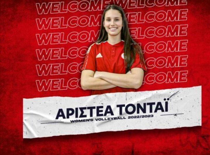 «Ο ΟΛΥΜΠΙΑΚΟΣ Σ.Φ.Π. ανακοινώνει την έναρξη της συνεργασίας του με την Αριστέα Τοντάι. Η Ελληνίδα κεντρική (1,95μ., ημ. γέννησης 5/7/1999) υπέγραψε το νέο της συμβόλαιο και εντάσσεται στο ρόστερ της ομάδας βόλεϊ Γυναικών του συλλόγου.