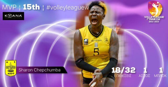 Η Σαρόν Τσεπτσούμπα του Άρη είναι η ΚΥΑΝΑ MVP της 15ης αγωνιστικής του πρωταθλήματος της Volley League Γυναικών 2022-2023.