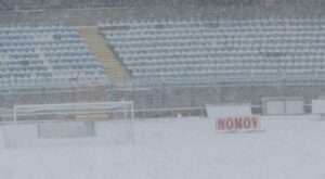 Καλυμμένο από χιόνι το «Αθανάσιος Διάκος» λίγες ώρες πριν από τον απογευματινό ημιτελικό της Λαμίας με τον ΠΑΟΚ για το Κύπελλο