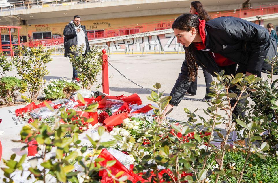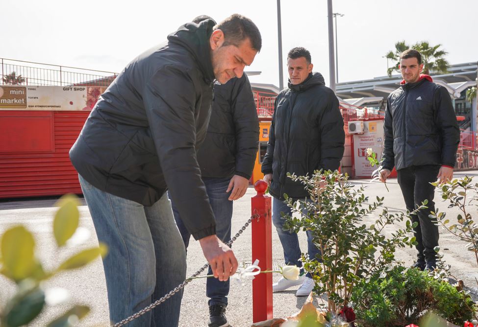 Φόρο τιμής στο μνημείο έξω από το γήπεδο Καραϊσκάκη απέτισαν οι ομάδες χάντμπολ και πόλο Ανδρών και Γυναικών του Ολυμπιακού. Κάθε μέλος της ομάδας άφησε από ένα λευκό τριαντάφυλλο για τις 21 ψυχές που έφυγαν τόσο άδικα και πρόωρα το 1981.