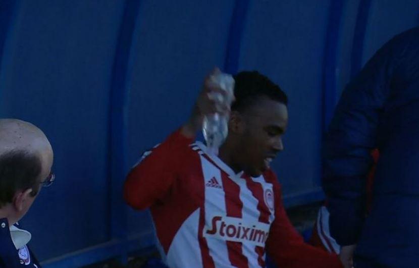 Περνώντας στον πάγκο, ο Γκάρι Ροντρίγκες δεν μπόρεσε να κρύψει τον εκνευρισμό του και πέταξε ένα μπουκάλι.