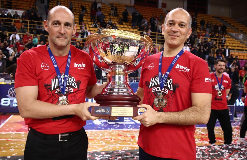 «Είμαστε χαρούμενοι και περήφανοι για τους τίτλους και για αυτά που έρχονται. Η ομάδα παίζει εντυπωσιακό μπάσκετ τη θαυμάζει όλη η Ευρώπη και η Ελλάδα και είμαστε περήφανοι για αυτό», ανέφερε ο Γιώργος Αγγελόπουλος, ενώ ο Παναγιώτης Αγγελόπουλος συμπλήρωσε στην κάμερα της ΕΡΤ: «Αυτό που βλέπουμε σήμερα έχει ξεκινήσει πάρα πολλά χρόνια, με επιμονή, με ό,τι έχουμε περάσει. Αυτό δεν αρκεί μόνο του, θέλει χημεία ομάδας με προπονητή, προέδρους. Τα έχουμε πετύχει αυτά και βλέπουμε αυτά που βλέπουμε. Η δίψα για τίτλους δε σταματάει. Τον σημερινό τίτλο τον αφιερώνω στα παιδιά μου».