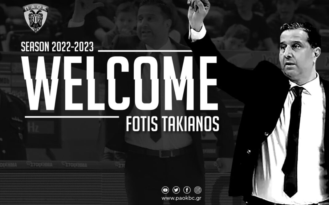 «Η ΚΑΕ ΠΑΟΚ mateco ανακοινώνει τη συμφωνία με τον προπονητή Φώτη Τακιανό, ο οποίος αναλαμβάνει την τεχνική ηγεσία της ομάδας μας ως το τέλος της σεζόν 2023-24. Καλωσορίζουμε τον κορυφαίο προπονητή της περσινής σεζόν στη Basket League στη μεγάλη οικογένεια του ΠΑΟΚ.