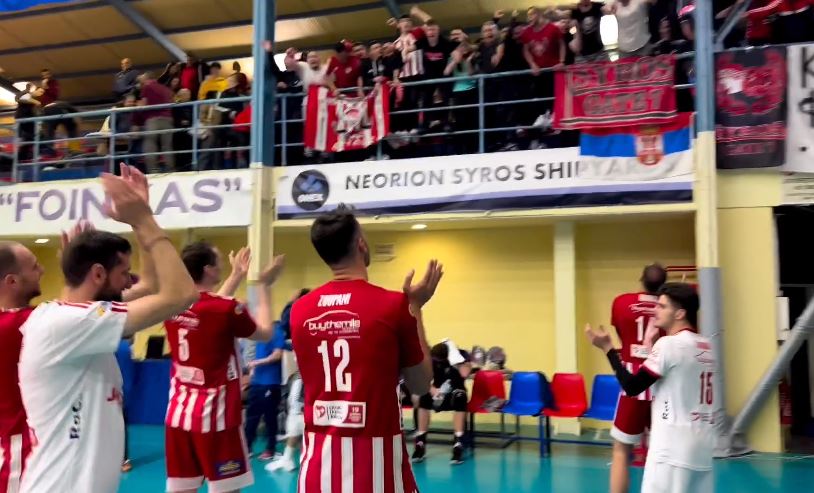 Ο Ολυμπιακός προκρίθηκε στο Final Four του Κυπέλλου επικρατώντας με ανατροπή με 1-3 του Φοίνικα στη Σύρο και στο φινάλε του αγώνα πανηγύρισε με τους οπαδούς του στο κλειστό «Δ. Βικέλας».