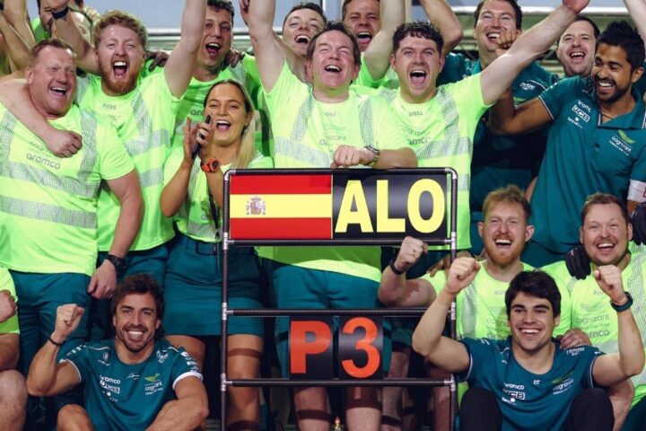 Με την ψυχή τους γιόρτασαν στην Άστον Μάρτιν το βάθρο του Φερνάντο Αλόνσο στο πρώτο Γκραν Πρι της χρονιάς στο Μπαχρέιν.