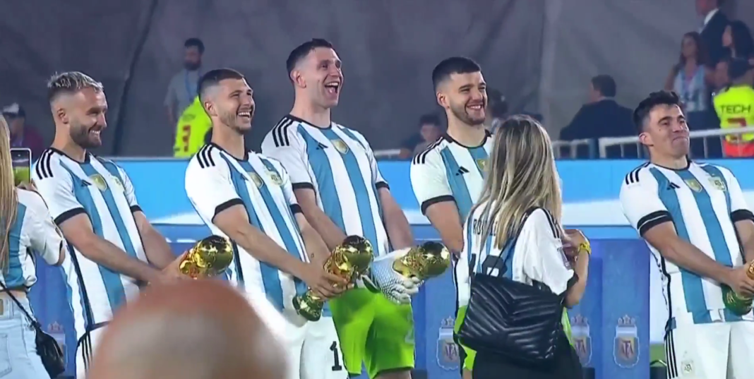Τον πανηγυρισμό που είχε σηκώσει έντονες αντιδράσεις στον τελικό του Μουντιάλ επανέλαβε μαζί με τους συμπαίκτες του ο Εμιλιάνο Μαρτίνες.