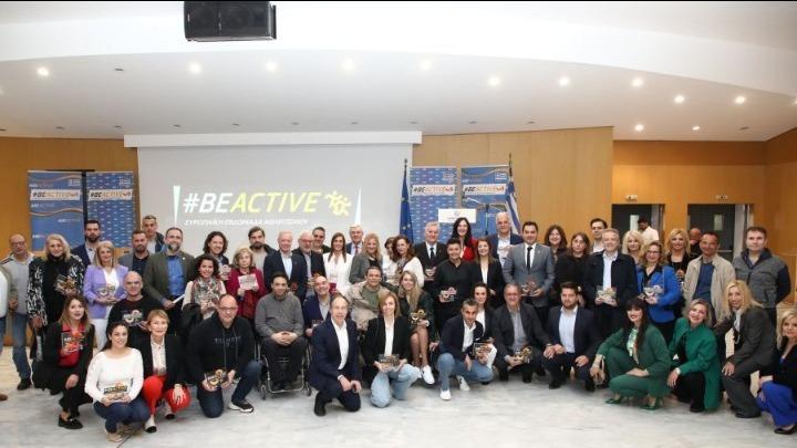 Με μεγάλη επιτυχία πραγματοποιήθηκε σήμερα (31/3) στις εγκαταστάσεις της Γενικής Γραμματείας Αθλητισμού η καθιερωμένη εκδήλωση βράβευσης των συμμετεχόντων φορέων του ευρωπαϊκού προγράμματος της Γ.Γ.Α. #BEACTIVE για τα έτη 2021-2022. Το ευρωπαϊκό πρόγραμμα #BEACTIVE, που αποσκοπεί στην προαγωγή του αθλητισμού και της σωματικής άσκησης και απευθύνεται σε όλους και σε όλες τις ηλικίες, αποτελεί κυρίαρχο άξονα της αθλητικής πολιτικής στην Ευρώπη και είναι μία από τις βασικές προτεραιότητες της πολιτικής του Υφυπουργείου Αθλητισμού.