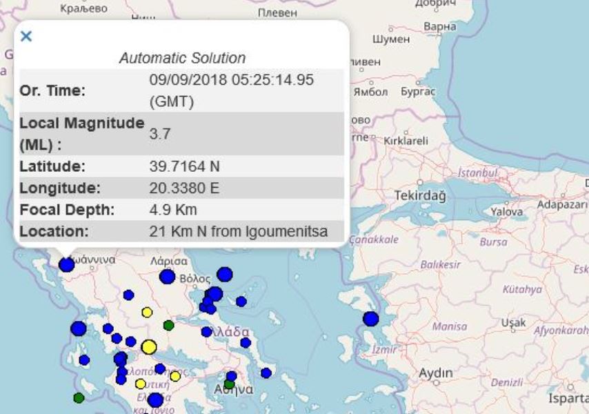 Σεισμός μεγέθους 3,7 βαθμών της κλίμακας Ρίχτερ σημειώθηκε στις 8.25 το πρωί κοντά στην Ηγουμενίτσα.