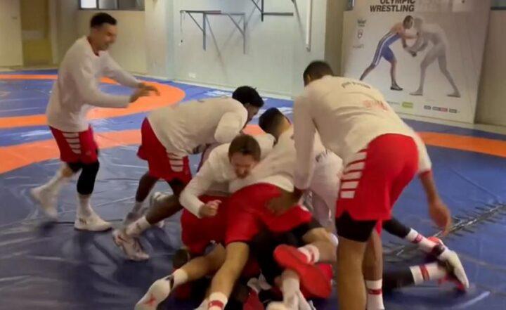 Το γνωστό τελετουργικό του Ολυμπιακού πριν τα παιχνίδια σε Ελλάδα και Ευρώπη συνεχίστηκε και στα Άνω Λιόσια, με τον Γιαννούλη Λαρεντζάκη να γίνεται αποδέκτης πολλής και κάπως… επιθετικής αγάπης από τους συμπαίκτες του σε παλαίστρα που βρίσκεται στο εσωτερικό των Άνω Λιοσίων!