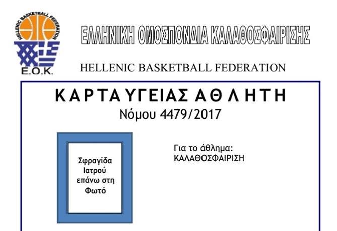 Η ΕΣΚΑ επισημαίνει ότι από την φετινή αγωνιστική περίοδο (2018-2019) η Κάρτα Υγείας είναι απαραίτητη για κάθε αθλητή/ρια και πρέπει να προσκομίζεται σε κάθε αγώνα.