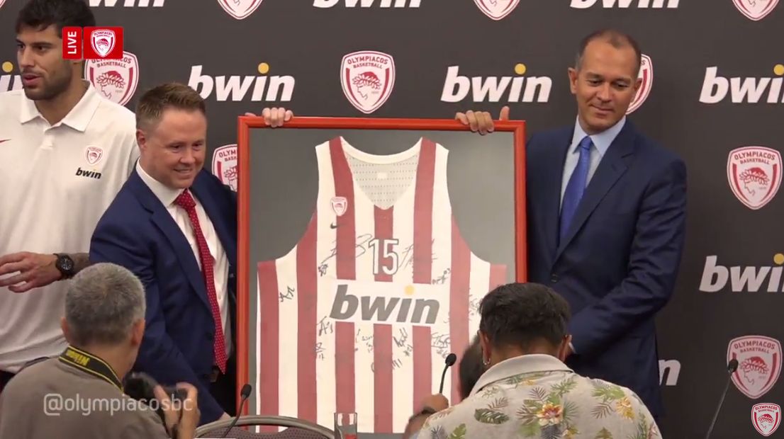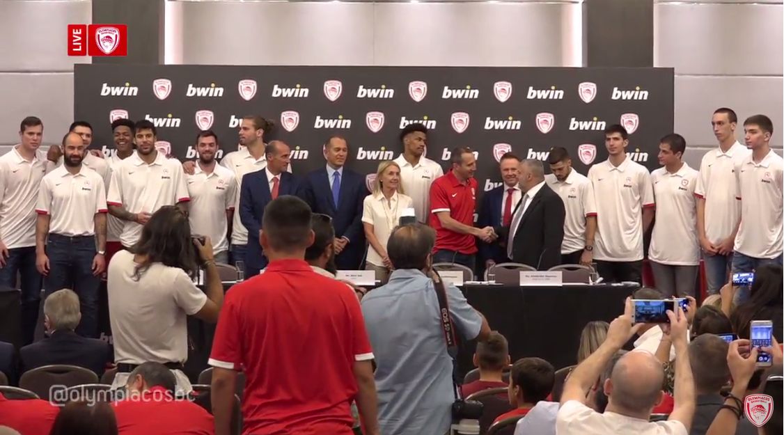 Με επίσημο τρόπο παρουσιάστηκαν οι τρεις νέες φανέλες του Ολυμπιακού, μαζί με τον βασικό χορηγό των «ερυθρολεύκων».