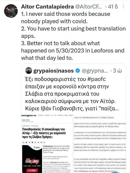 3. Καλύτερα να μην μιλήσω για το τι συνέβη στην Λεωφόρο στις 05/30/2023 (σ.σ. εννοεί 30/04/2023 και το ματς με ΑΕΚ) και σε τι οδήγησαν αυτά που συνέβησαν τότε.»