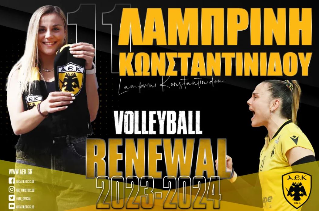 Η ανακοίνωση: «Η ΑΕΚ βρίσκεται στην ευχάριστη θέση να ανακοινώσει την ανανέωση της συνεργασίας της με την Λαμπρινή Κωνσταντινίδου. Η 26χρονη (16/09/1996) διεθνής πασαδόρος, υπέγραψε νέο συμβόλαιο και θα παραμείνει στο δυναμικό της γυναικείας ομάδας Βόλεϊ του Συλλόγου, τουλάχιστον ως το καλοκαίρι του 2024.