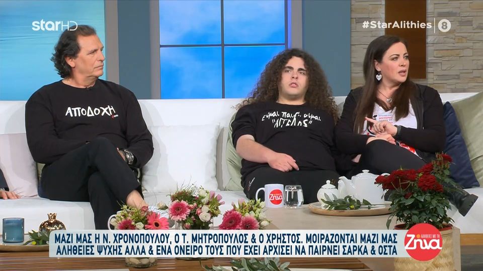 Στην εκπομπή του STAR «Αλήθειες με τη Ζήνα» φιλοξενήθηκε μαζί με τη Νένα Χρονοπούλου και τον 18χρονο γιο του, Χρήστο, ο Τάσος Μητρόπουλος.