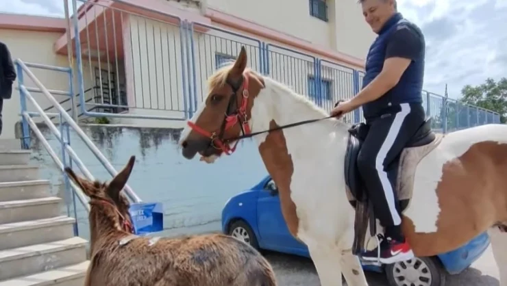 Ένα πολύ ιδιαίτερο τρόπο βρήκε ένας αγρότης να διαμαρτυρηθεί στο Ναύπλιο πηγαίνοντας για να ψηφίσει. Ο 50χρονος έφτασε έξω από το εκλογικό του κέντρο πάνω σε άλογο και μαζί με μερικά γαϊδουράκια.