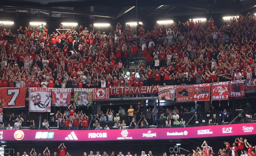 Από νωρίς αρκετοί πήραν θέση στις εξέδρες παρακολουθώντας και τον μικρό τελικό ανάμεσα σε Μονακό και Μπαρτσελόνα και φωνάζοντας συνθήματα υπέρ του Ολυμπιακού.