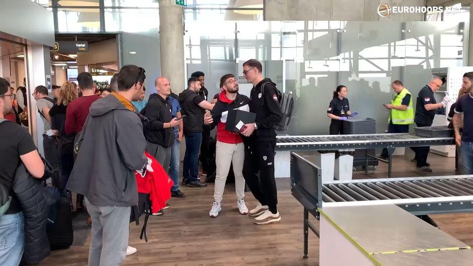 Δεκάδες οπαδοί της ομάδας χειροκρότησαν και συνόδευσαν με συνθήματα την αποστολή μέχρι αυτή να ανέβει στο αεροπλάνο για την επιστροφή της στην Αθήνα.