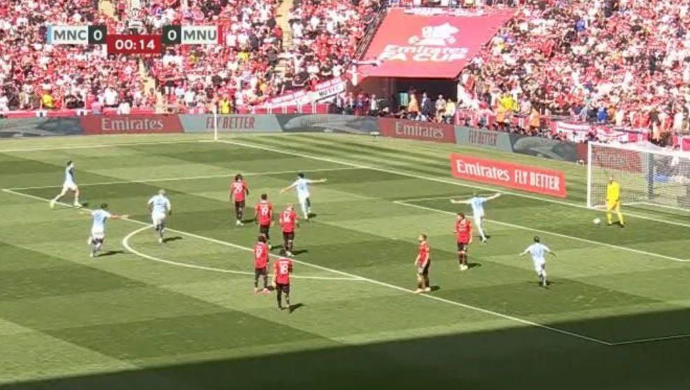 Μόλις 13″ από τη σέντρα του τελικού του Κυπέλλου Αγγλίας, η Μάντσεστερ Σίτι προηγήθηκε απέναντι στη Μάντσεστερ Γιουνάιτεντ.