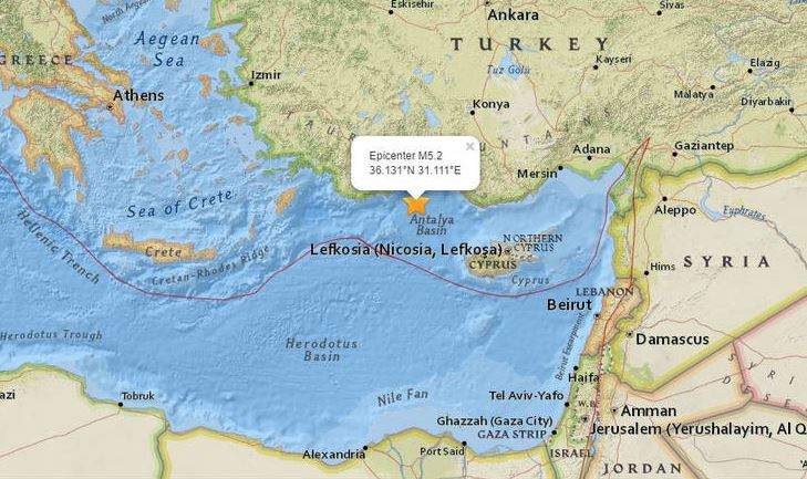 Σεισμός 5,2 Ρίχτερ σημειώθηκε στην Αττάλεια της Τουρκίας το πρωί της Τετάρτης, σύμφωνα με το Αμερικανικό Γεωδυναμικό Ινστιτούτο.