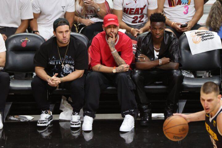Neymar Jr. and Vinicius Jr. sit during the game between the Denver Nuggets and the Miami Heat during Game Four of the 2023 NBA Finals. pic.twitter.com/4NHRUmt7hd