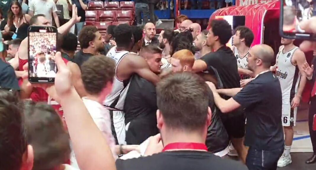 Rissa al Forum all’uscita del campo della Virtus Bologna. Si é rischiato grosso con scontri tra giocatori e tifosi. pic.twitter.com/bptPmH9Rj4