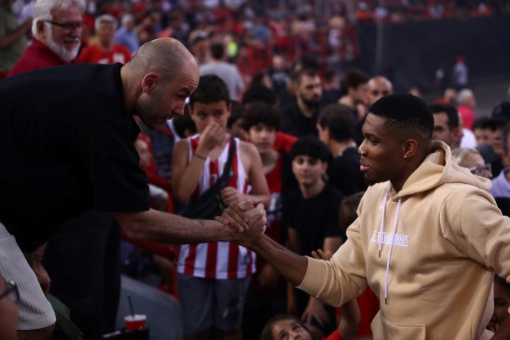 Το ΣΕΦ χθες γέμισε με εκλεκτές παρουσίες, με τους Βασίλη Σπανούλη, Θοδωρή Παπαλουκά και Γιάννη Αντετοκούνμπο να βρίσκονται μεταξύ άλλων στις κερκίδες.