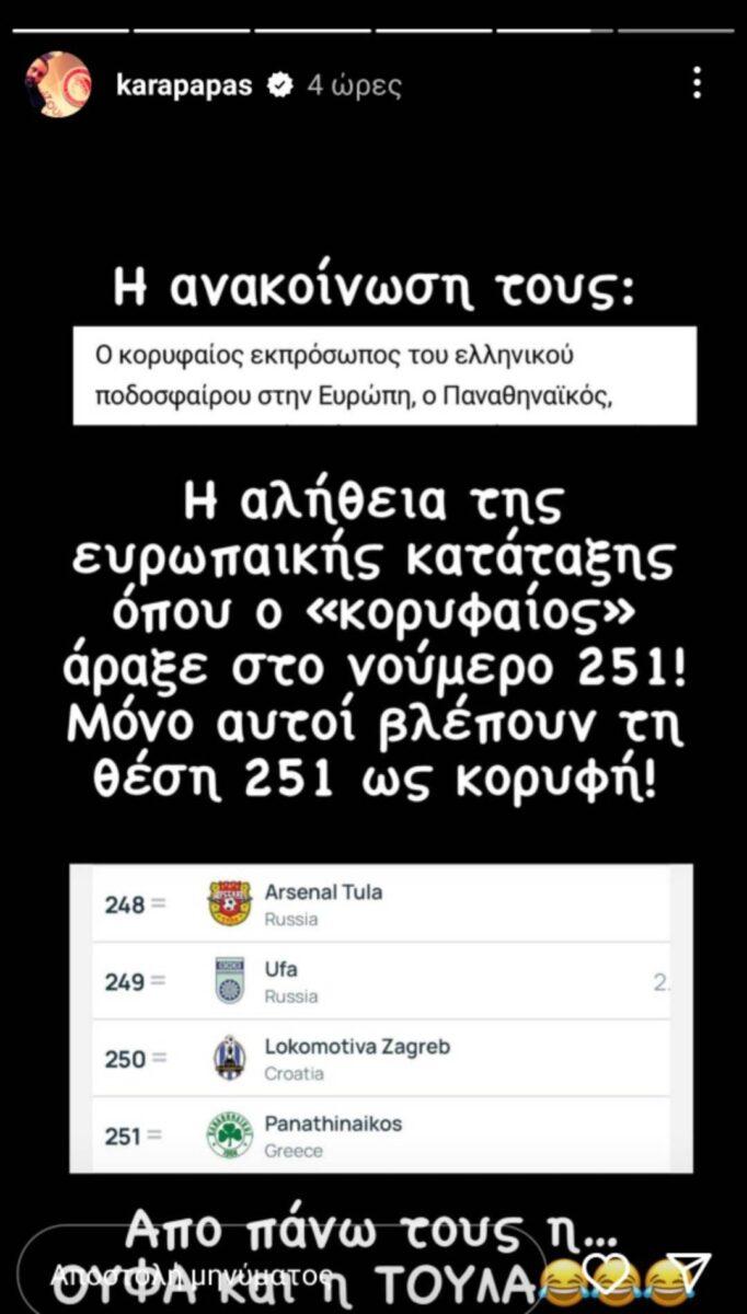 Ο Κώστας Καραπαπάς φυσικά δεν μπορούσε να αφήσει αναπάντητη την αναφορά των Πράσινων. Ο εκ των αντιπροέδρων της ερυθρόλευκης ΠΑΕ με μια φωτογραφία έδειξε την απορία του.