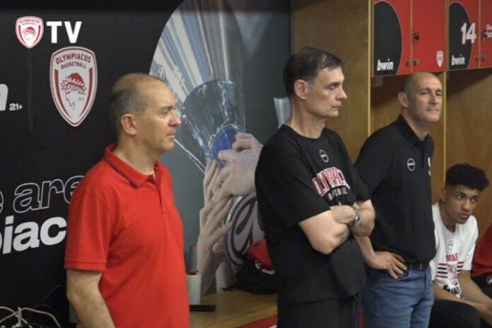 Οι αδερφοί Αγγελόπουλοι βρέθηκαν στα αποδυτήρια και αφού αποθέωσαν τους παίκτες των Πειραιωτών πανηγύρισαν μαζί τους την κατάκτηση του δεύτερου συνεχόμενου εγχώριου νταμπλ