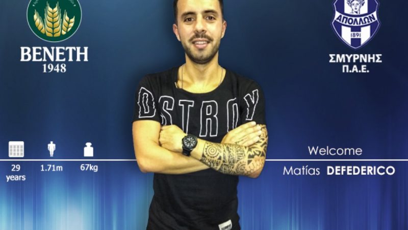 Παίκτης του Απόλλωνα Σμύρνης είναι και επίσημα ο πρώην διεθνής Αργεντινός φορ Ματίας Αντριάν Ντεφεντερίκο.