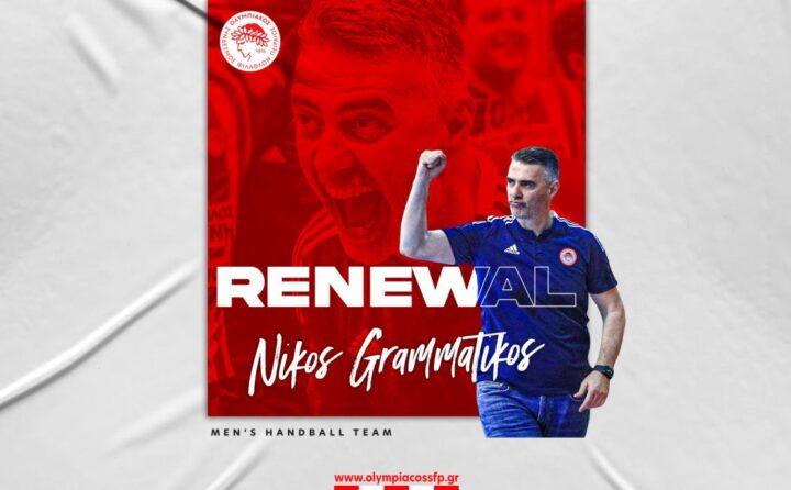 Ο ΟΛΥΜΠΙΑΚΟΣ Σ.Φ.Π. ανακοινώνει την ανανέωση της συνεργασίας του με τον Νίκο Γραμματικό. Ο Έλληνας προπονητής υπέγραψε το νέο του συμβόλαιο και παραμένει στην τεχνική ηγεσία της ομάδας χάντμπολ του συλλόγου.