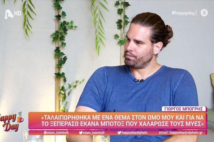 Συνέντευξη παραχώρησε ο Γιώργος Μπόγρης στη τηλεοπτική εκπομπή του ALPHA “Happy Day”. Εκεί μεταξύ άλλων αναφέρθηκε σε ένα πρόβλημα στον ώμο που τον ταλαιπώρησε στο παρελθόν, επειδή έσφιγγε πολύ τα δόντια του, ενώ δήλωσε πως θεραπεύτηκε με μπότοξ.