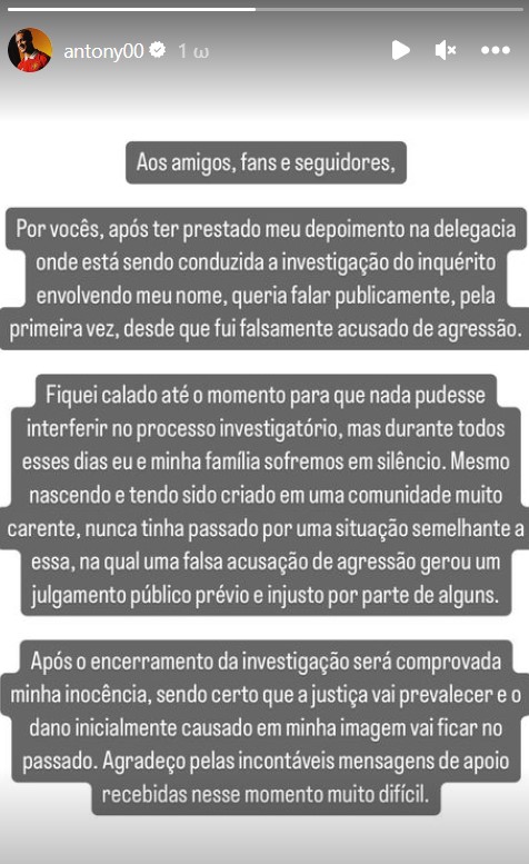 Θέση για τις καταγγελίες της πρώην συντρόφου του πήρε για πρώτη φορά με ανάρτηση του ο Άντονι.
