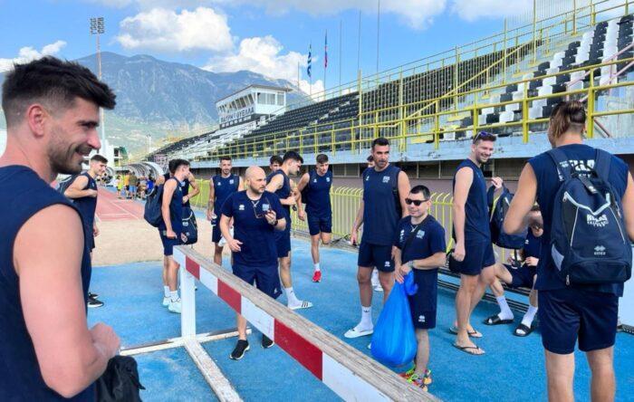 Η προετοιμασία ξεκίνησε την Τετάρτη 28 Ιουνίου στην Καλαμάτα όπου η Εθνική θα αντιμετωπίσει σε φιλικούς αγώνες την Αλγερία το διάστημα 13-16/7. Ο Ντάντε Μπονιφάντε και οι συνεργάτες του Σαμουέλε Πάπι, Κώστας Χριστοφιδέλης, Γιώργος Στεφάνου μαζί με τον τιμ μάνατζερ της Εθνικής Μάριο Γκιούρδα υποδέχθηκαν τους Έλληνες διεθνείς και τους… παρέδωσαν στον γυμναστή της ομάδας Λάμπρο Δάνα.