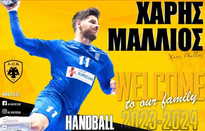 «Η ΑΕΚ βρίσκεται στην πολύ ευχάριστη θέση να ανακοινώσει την έναρξη της συνεργασίας της με τον Χάρη Μάλλιο! Ο 35χρονος (06/08/1987) πλέι μέικερ, ύψους 1,82 μ., είναι ο αρχηγός της Εθνικής μας ομάδας, που πήρε την πρόκριση για το EURO 2024 και είναι από τους σημαντικότερους αθλητές στην Ιστορία του ελληνικού Χάντμπολ. Ο Μάλλιος υπέγραψε συμβόλαιο για τη νέα σεζόν και εντάσσεται στο δυναμικό της ανδρικής ομάδας Χάντμπολ του Συλλόγου.