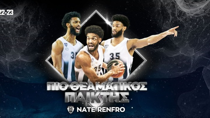 Ο Νέιτ Ρένφρο ήταν συχνά στην διάρκεια της τελευταίας σεζόν στο νούμερο 1 του Top 10 των καλύτερων φάσεων της αγωνιστικής. Συνεπώς ήταν αναμενόμενη η ανάδειξη του σε «Πιο Θεαματικό Παίκτη της Α1 Ανδρών/Basket League 2022-23».