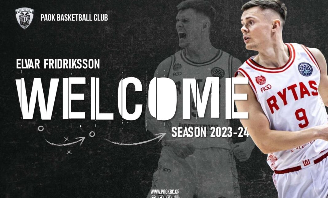 «Η ΚΑΕ ΠΑΟΚ mateco ανακοινώνει τη συμφωνία με τον διεθνή Ισλανδό γκαρντ Elvar Fridrikkson, ο οποίος θα αγωνιστεί στην ομάδα μας τη σεζόν 2023-24. Ο Fridrikkson είναι γνώριμος στους φιλάθλους του ΠΑΟΚ και από τις περσινές αναμετρήσεις με την Rytas Vlinius στην οποία αγωνιζόταν και είχε καθοριστική συμβολή στην πρόκριση της Λιθουανικής ομάδας στους «16» του BCL σε βάρος του ΠΑΟΚ. Καλωσορίζουμε τον Elvar Fridrikkson στην μεγάλη οικογένεια του ΠΑΟΚ.