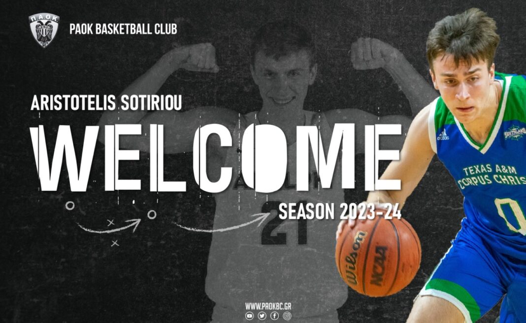 «Η ΚΑΕ ΠΑΟΚ mateco ανακοινώνει τη συμφωνία με τον 22χρονο φόργουορντ Αριστοτέλη Σωτηρίου, οποίος θα αγωνιστεί στην ομάδα μας την σεζόν 2023-24. Καλωσορίζουμε έναν ακόμη νέο και πολύ αξιόλογο αθλητή, στη μεγάλη οικογένεια του ΠΑΟΚ.