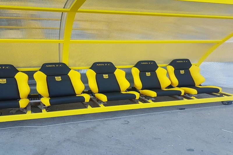 Η ΠΑΕ Άρης δημοσίευσε τις παρακάτω φωτογραφίες με τους πάγκους, να έχουν τι άλλο εκτός από το κιτρινόμαυρο χρώμα.
