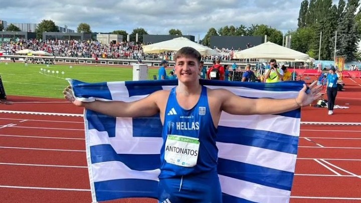 Ο Δημήτρης Αντωνάτος κατέκτησε το πρώτο μετάλλιο για τα ελληνικά «χρώματα» στο Ευρωπαϊκό Πρωτάθλημα στίβου κάτω των 20 ετών που διεξάγεται στην Ιερουσαλήμ. Ο 17χρονος πρωταθλητής ανέβηκε στο τρίτο σκαλί του βάθρου στη σφαιροβολία με επίδοση 19,31 μέτρα, την οποία σημείωσε στην έκτη και τελευταία προσπάθειά του. Αυτή η επίδοση αποτελεί νέο ατομικό ρεκόρ για τον Αντωνάτο, ο οποίος είχε σημειώσει 19,30 μέτρα στον προκριματικό. Αξίζει να σημειωθεί ότι ο νεαρός ρίπτης βρισκόταν στην πέμπτη θέση του τελικού μέχρι την πέμπτη προσπάθειά του, ωστόσο κατάφερε με την τελευταία βολή του να πάρει το μετάλλιο. Οι βολές του Αντωνάτου στον τελικό ήταν 18,41 μ., 18,99 μ., 18,25 μ., 18,41 μ., άκυρη και 19,31 μέτρα. Το χρυσό μετάλλιο κατέκτησε ο Γερμανός Λάσε Σουλτς με βολή στα 20,21 μέτρα, ενώ το ασημένιο πήρε ο συμπατριώτης του, Λούκας Σόμπερ, με επίδοση 19,76 μέτρα.