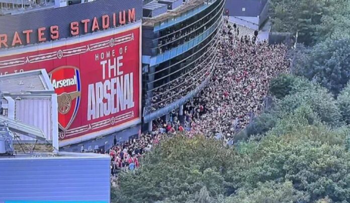 There are currently over 35,000 Arsenal fans unable to get inside the stadium due to a new ticketing system error.