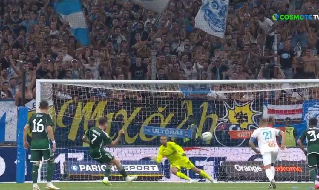 Ο Γάλλος χαφ της Μαρσέιγ βρήκε την μπάλα με απλωμένο χέρι εντός της περιοχής της ομάδας του στο κόρνερ των Πράσινων και λίγα λεπτά αργότερα ο Όλιβερ έλεγξε τη φάση στο VAR. Αμέσως ο Άγγλος υπέδειξε πέναλτι το οποίο εκτέλεσε ο Ιωαννίδης στο 9ο λεπτό των καθυστερήσεων για να μειώσει σε 2-1.