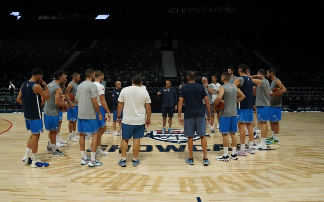 Πρώτη «γνωριμία» της Εθνικής Ανδρών με την «Έτιχαντ Αρένα», που απόψε (19:00) θα την φιλοξενήσει στο φιλικό με τις ΗΠΑ. @FIBAWC #FIBAWC #PantaDipla #WinForHellas #HellasBasketball 🏀🇬🇷 pic.twitter.com/CinZT5ThH2